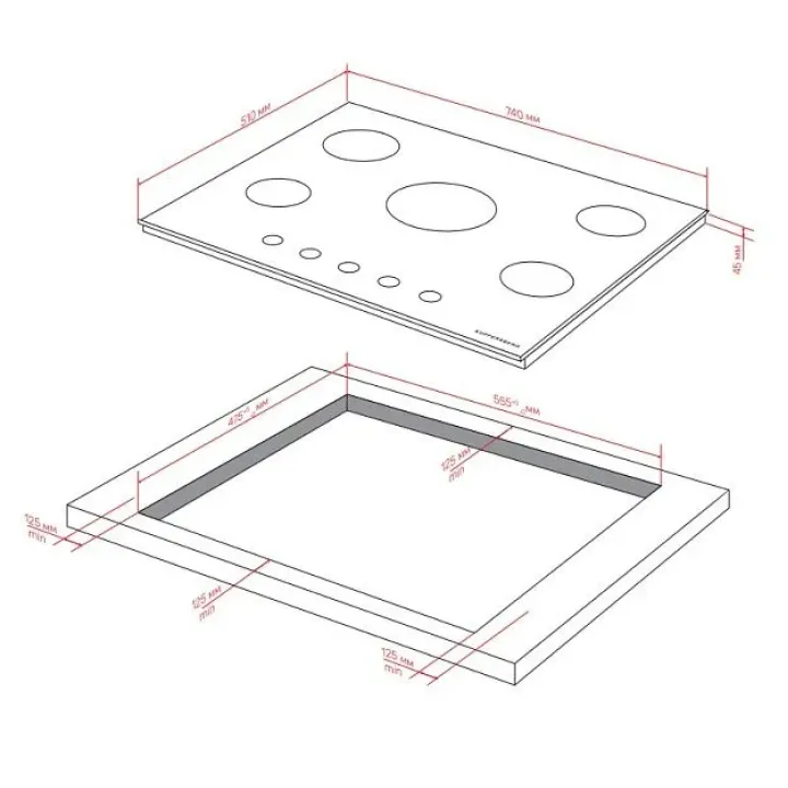 | Габариты ниши (ВхШхГ) | 45х555х475 мм |