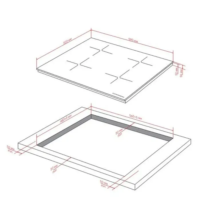 | Габариты ниши (ВхШхГ) | 52х560х480 мм |