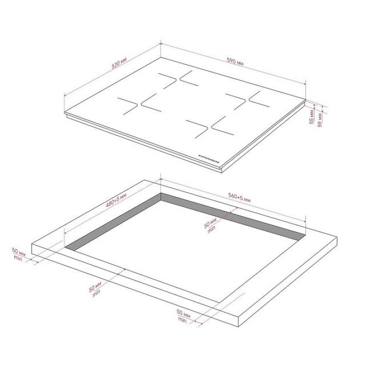 | Габариты ниши (ВхШхГ) | 55х560-565х480-485 мм |