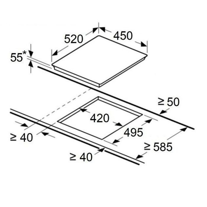 | Габариты ниши (ВхШхГ) | 55х430х490 мм |