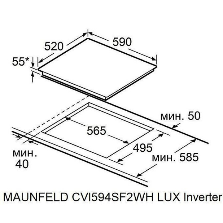 | Габариты ниши (ВхШхГ) | 55х565х495 мм |