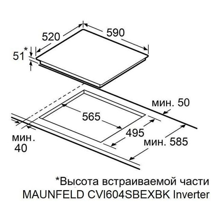 | Габариты ниши (ВхШхГ) | 51х565х495 мм |