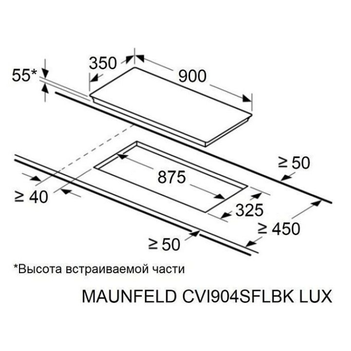 | Габариты ниши (ВхШхГ) | 55х875х325 мм |