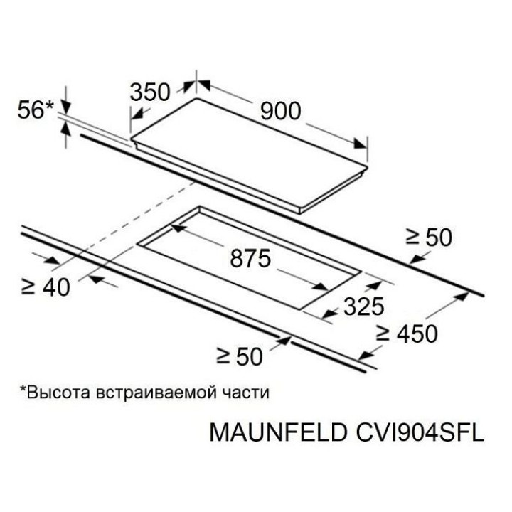 | Габариты ниши (ВхШхГ) | 56х875х325 мм |