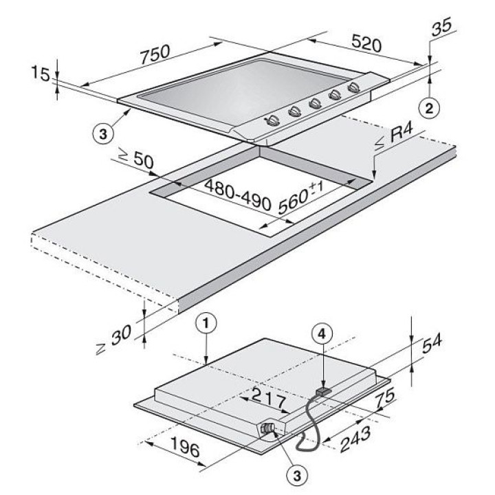 | Мощность конфорок | 1 кВт, 2х1.75 кВт, 2.6 кВт, 3.8 кВт |