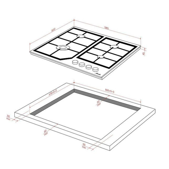 | Габариты ниши (ВхШхГ) | 45х555-560х475-480 мм |