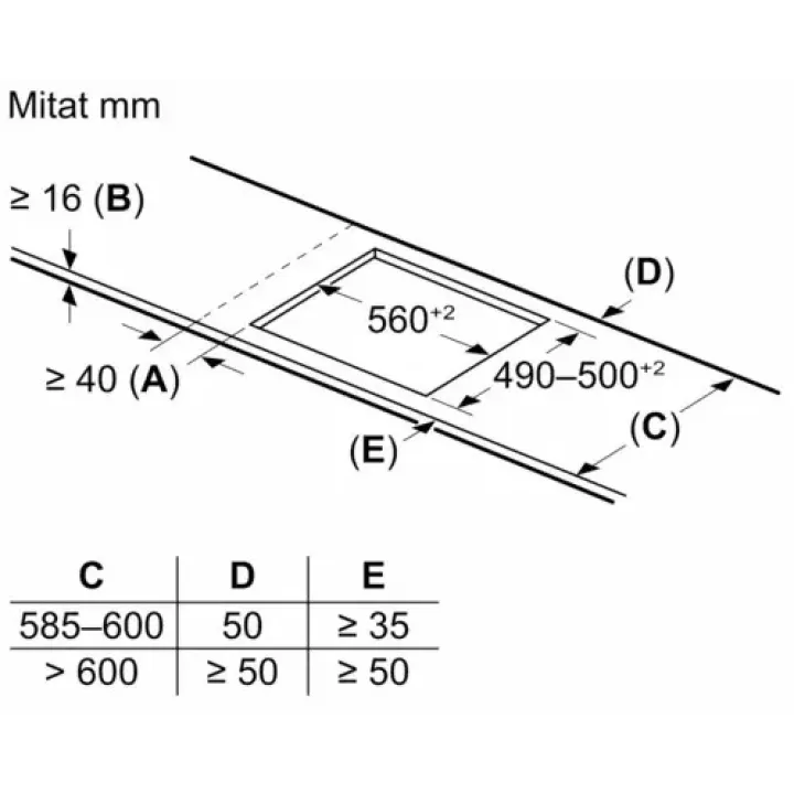 | Габариты ниши (ВхШхГ) | 16х560х490-500 мм |