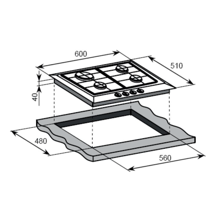 | Габариты ниши (ВхШхГ) | 40х560х480 мм |