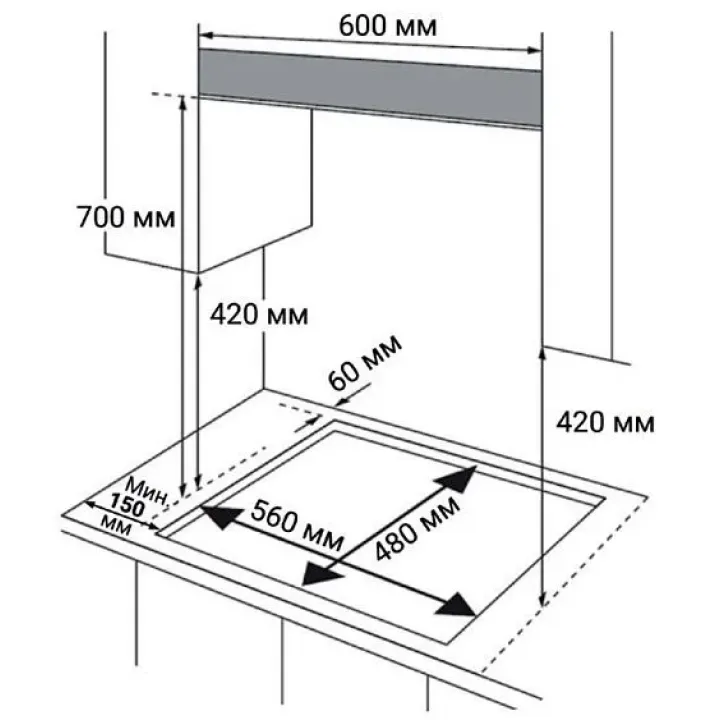 | Габариты ниши (ВхШхГ) | 40х560х480 мм |