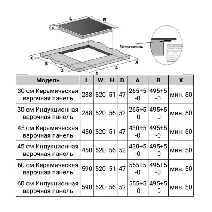 | Материал поверхности | стеклокерамика |