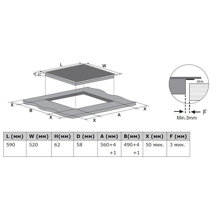 | Габариты ниши (ВхШхГ) | 58х560х490 мм |
