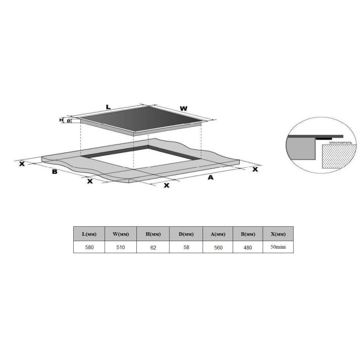 | Габариты ниши (ВхШхГ) | 58х560х480 мм |