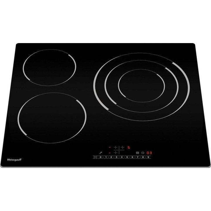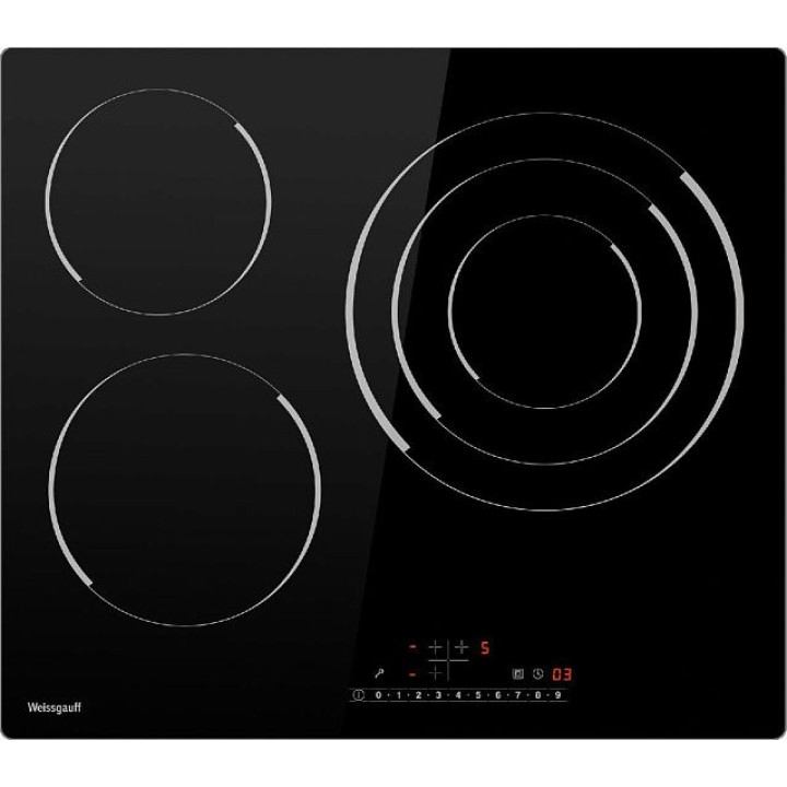 | Конфорки | 1x 165 мм*1,2 кВт (задняя левая), 1х 200 мм*1,8 кВт (передняя левая), 1 х 140/210/300 мм*1,05/1,95/2,7 кВт (тройной контур) |