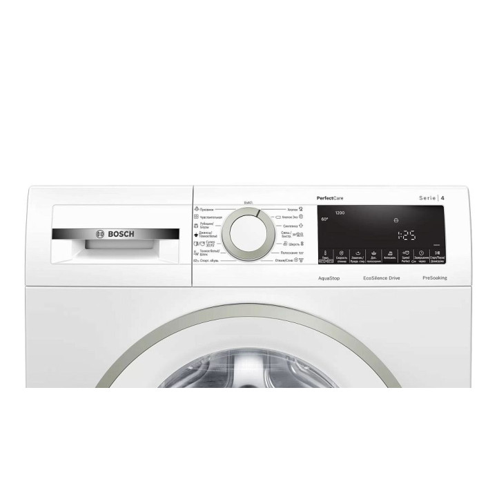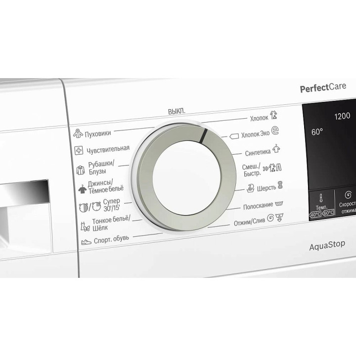 | Программы стирки | "Хлопок", "Хлопок Эко", "Синтетика", "Смешанная/Быстрая, "Шерсть", "Спортивная обувь", "Тонкое бельё/Шёлк", "Супер 30/15", "Джинсы/Тёмное бельё", "Рубашки/Блузы", "Чувствительная", "Пуховики", "Полоскание", "Отжим/Слив" |