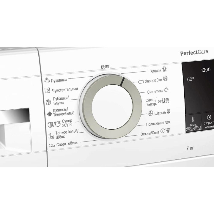 | Программы стирки | "Хлопок", "Хлопок Эко", "Синтетика", "Смешанная/Быстрая", "Шерсть", "Спортивная обувь", "Тонкое бельё/Шёлк", "Супер 30/15", "Джинсы/Тёмное бельё", "Рубашки/Блузы", "Чувствительная", "Пуховики", "Полоскание", "Отжим/Слив" |