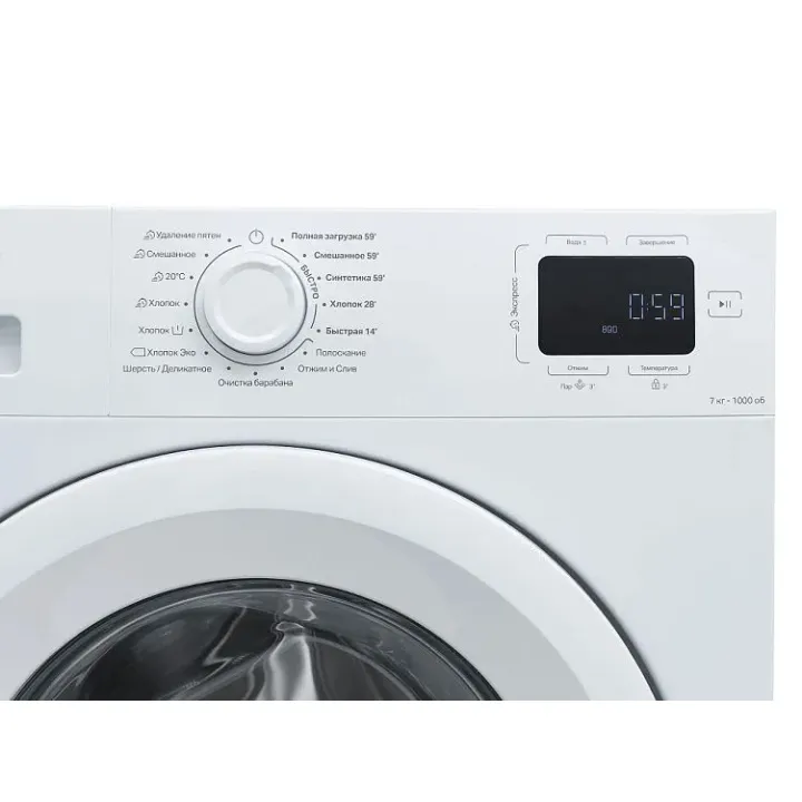 | Программы | хлопок, хлопок 28', хлопок (с предварительной стиркой), хлопок эко, синтетика, смешанное, экcпрecc 15’, полоскание+отжим, полоскание, отжим+слив, полная загрузка 59', очистка барабана, шерсть/деликатное, 20', смешанное 59', удаление пятен |
