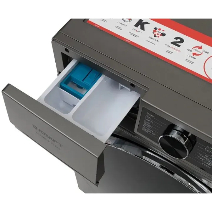 | Программы | хлопок, микс, шерсть, шелк, нижнее белье, пуховики, постельное белье, отжим, полоскание и отжим, выведение пятен, гигиена, 20`C, быстро 15`, ECO 40-60, К-Smart, очистка барабана |