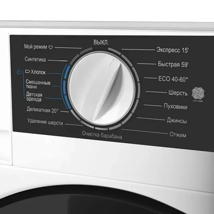 | Программы | синтетика, хлопок, смешанные ткани, детская одежда, деликатная 20°С, шерсть, удаление шерсти, джинсы, пуховики, ECO 40-60°, быстрая 59’, экспресс 15’ |