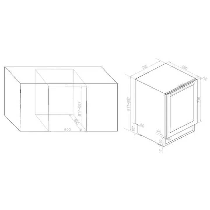 | Габариты ниши (ВхШхГ) | 817-887х600х555 мм |