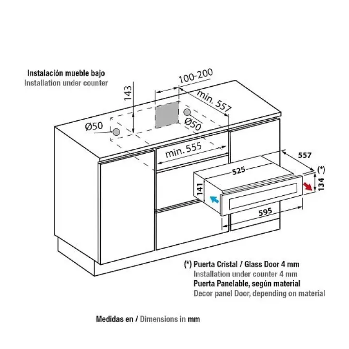 | Габариты ниши (ВхШхГ) | 143-150х555х557 мм |