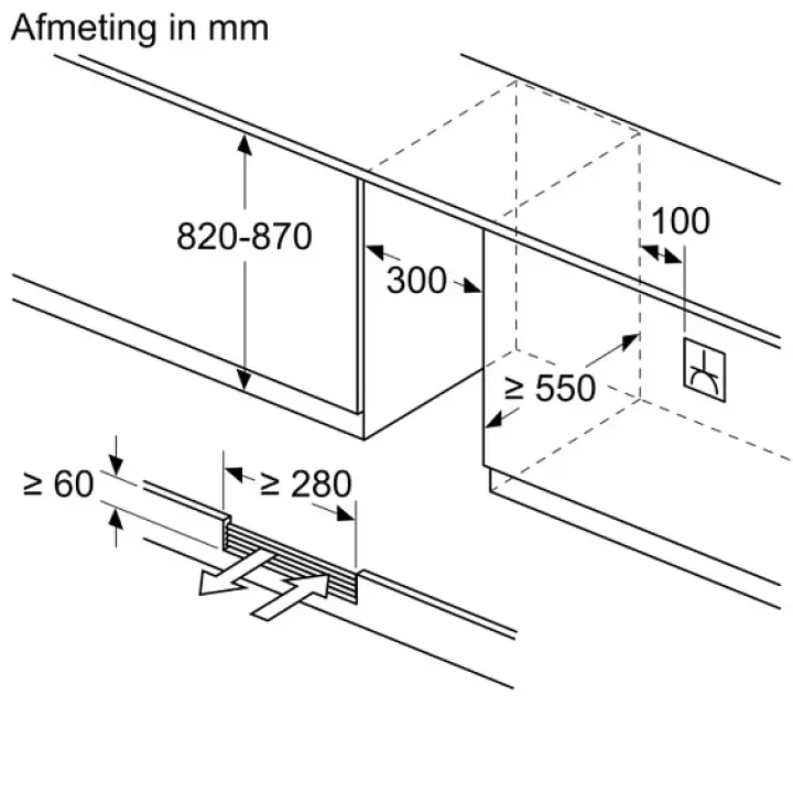 | Габариты встраивания (ВхШхГ) | 820-870х300х550 мм |