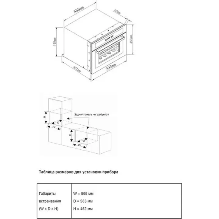 | Габариты ниши (ВхШхГ) | 452х565х563 мм |