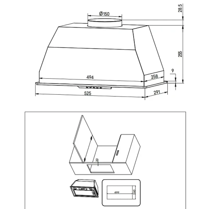 | Тип установки вытяжки | встраиваемые |