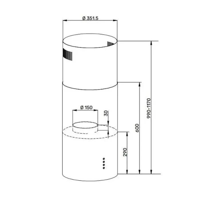 | Габариты (ВхШхГ) | 990-1170х351.5х351.5 мм |