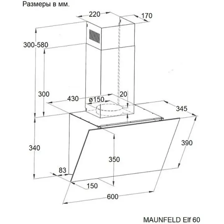 | Диаметр воздуховода | 150 мм |