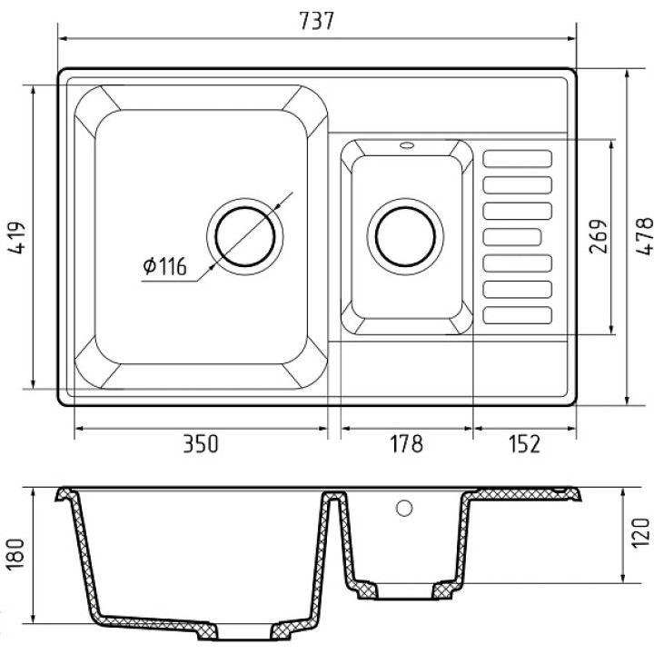 Кухонная мойка GRANFEST QUARZ GF-Z 21К серый