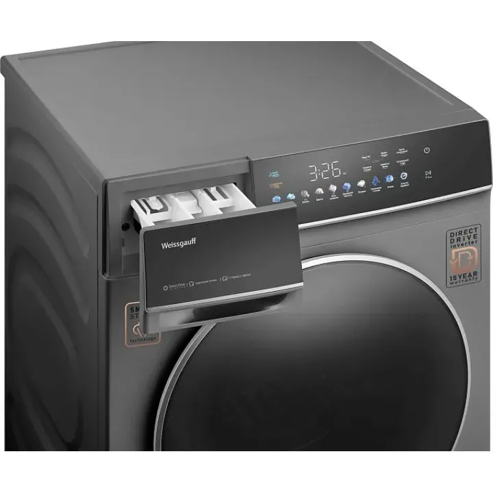 Стиральная машина WEISSGAUFF WM 62210 Direct Drive Touch Inverter Steam Grey