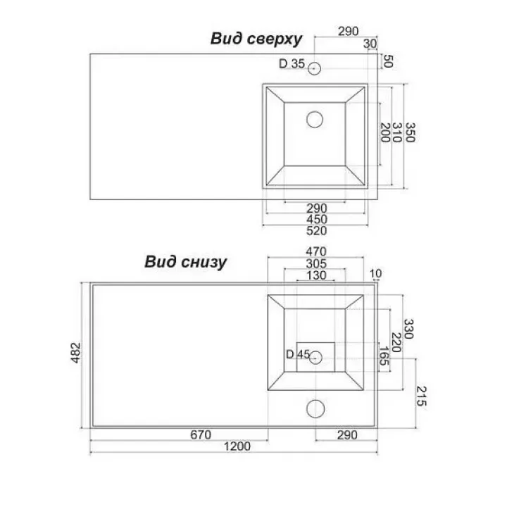 Раковина GROSSMAN МАРСАЛ-120 см правая чаша 5217120