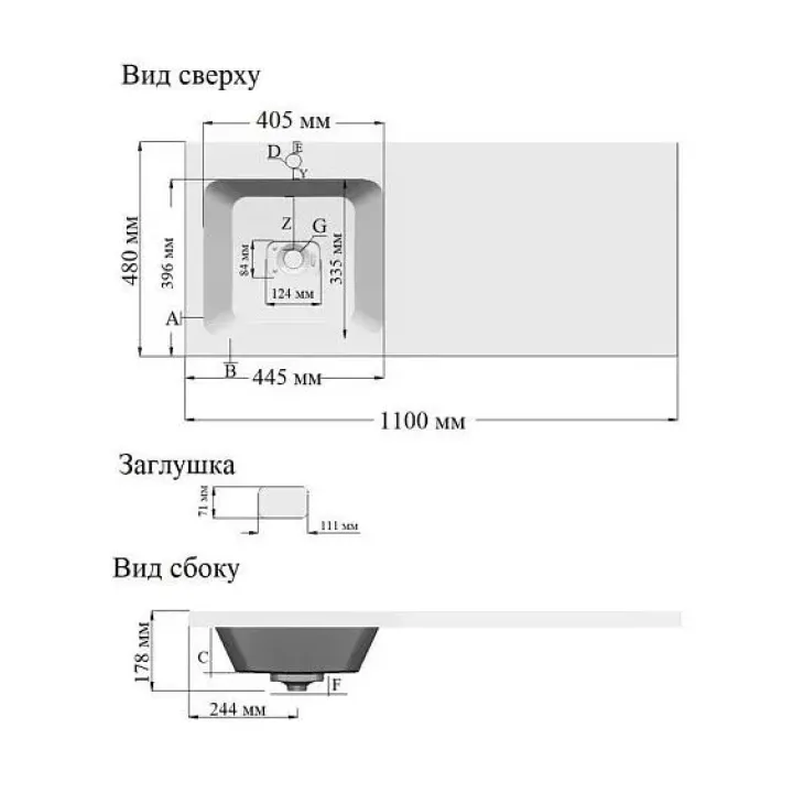 Раковина GROSSMAN КАМИЛЛА-110 см левая чаша 1101031