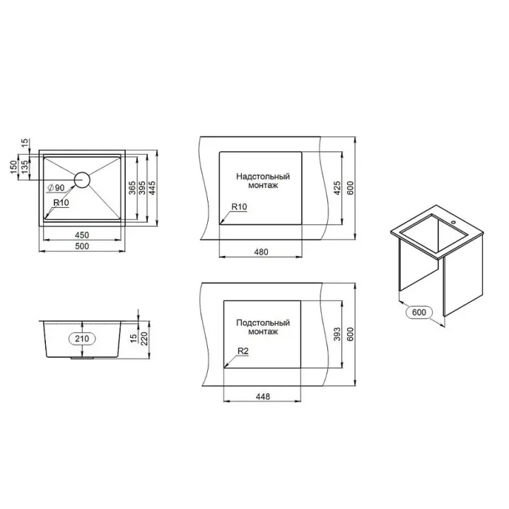 Кухонная мойка GRANULA KS-5045U сталь матовая