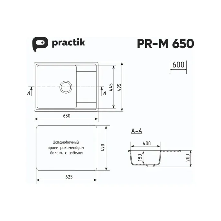 Кухонная мойка PRACTIK PR-M-650-002