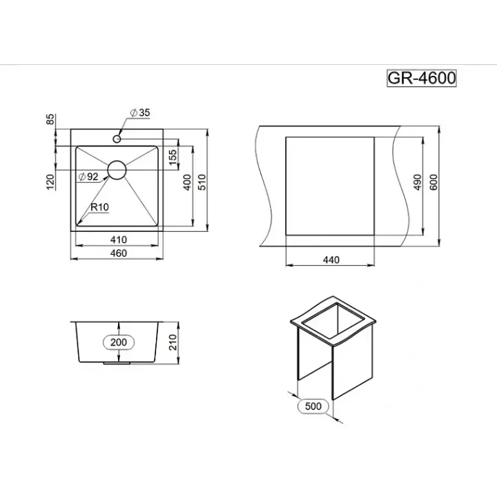 Кухонная мойка GRANULA GR-4600 графит/матовый