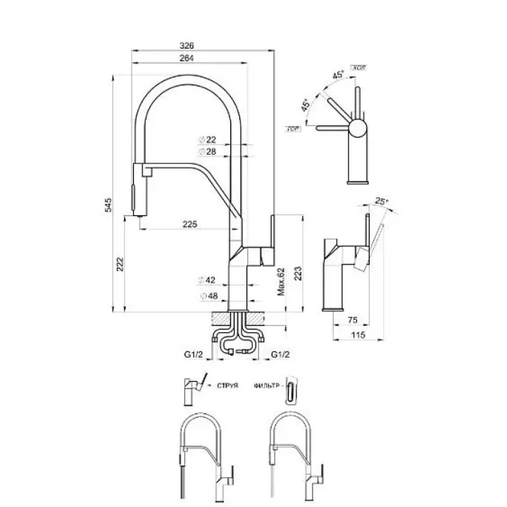 Смеситель GRANULA 9012 нержавеющая сталь