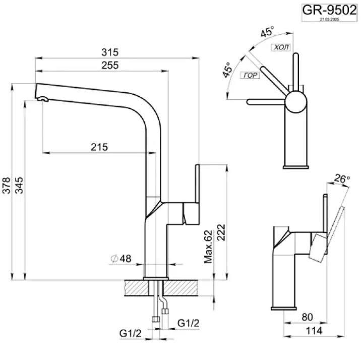 Смеситель GRANULA 9502 нержавеющая сталь