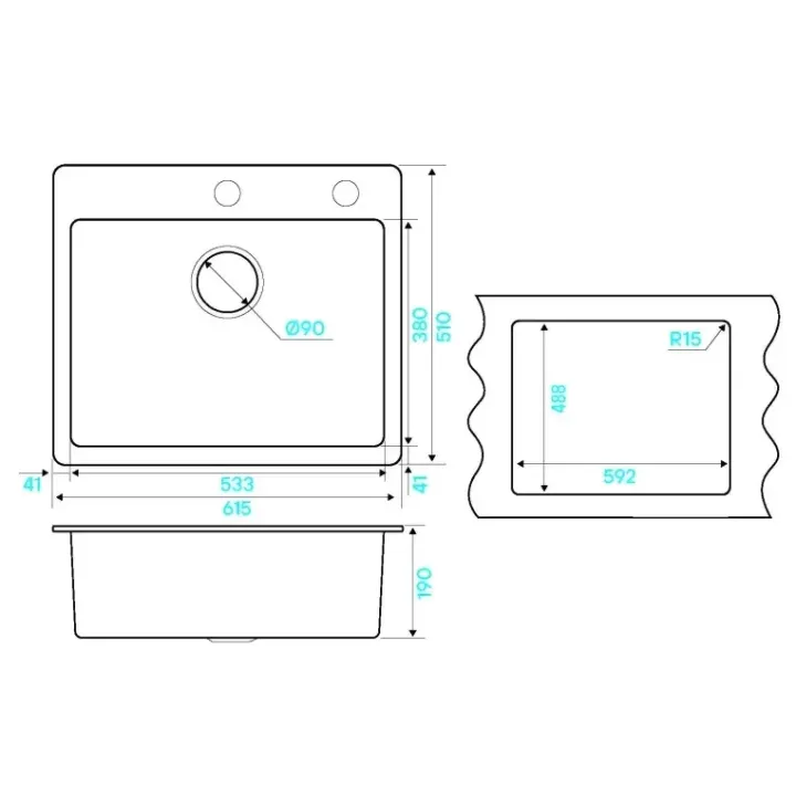 Кухонная мойка KUCHENSTERN TOPKERAM 60 керамический черный