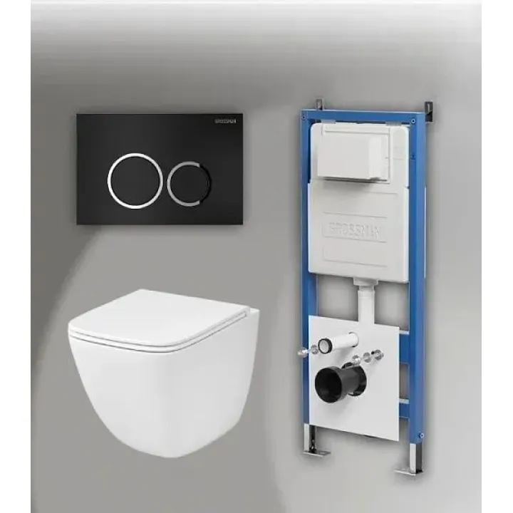Комплект GROSSMAN инсталляция 900.K31.01.000 + клавиша смыва 700.K31.01.210.210 черный матовый + унитаз GR-4497SQC