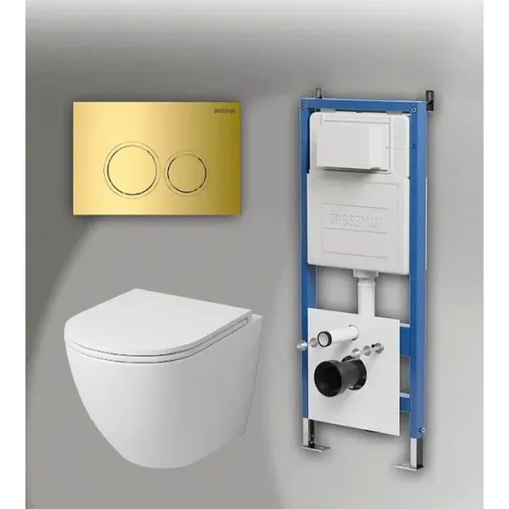 Комплект GROSSMAN инсталляция 900.K31.01.000 + клавиша смыва 700.K31.01.300.300 золото глянцевый + унитаз GR-4455MS