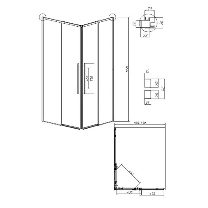 1/2 душевого ограждения GROSSMAN 1/2.K33.01.90.10.00 хром