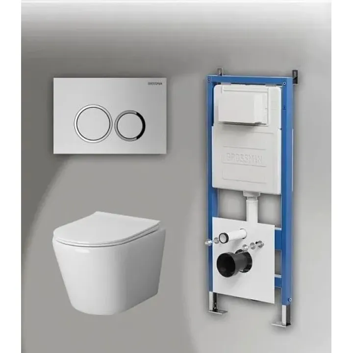 Комплект GROSSMAN инсталляция 900.K31.01.000 + клавиша смыва 700.K31.01.110.110 хром матовый + унитаз GR-4478S
