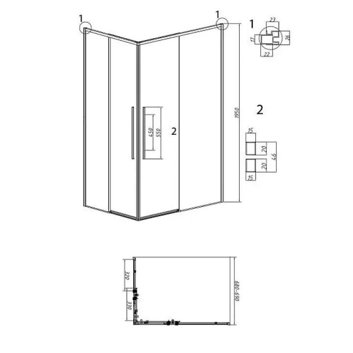 1/2 душевого ограждения GROSSMAN 1/2.K33.01.70.32.00 золото сатин