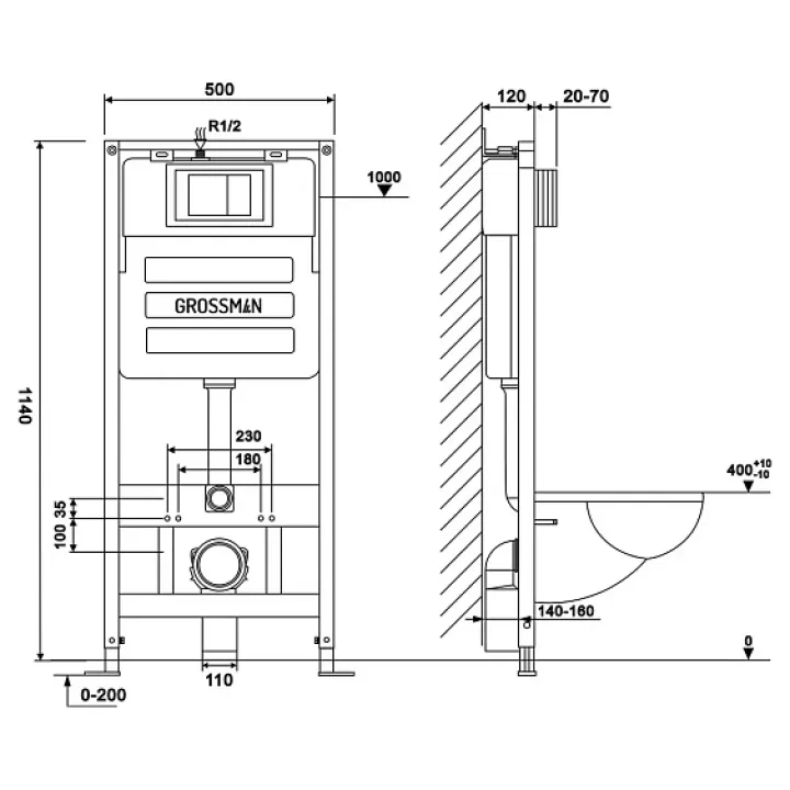 Комплект GROSSMAN инсталляция 900.K31.01.000 + клавиша смыва 700.K31.01.110.110 хром матовый + унитаз GR-4440S