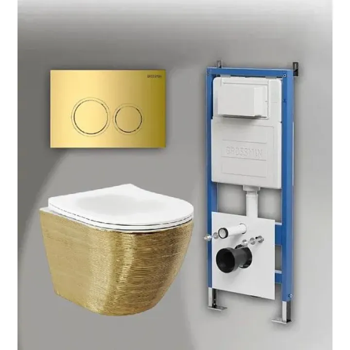 Комплект GROSSMAN инсталляция 900.K31.01.000 + клавиша смыва 700.K31.01.300.300 золото глянцевый + унитаз GR-4455GWS