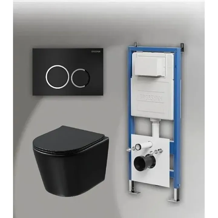 Комплект GROSSMAN инсталляция 900.K31.01.000 + клавиша смыва 700.K31.01.210.210 черный матовый + унитаз GR-4477BMSQ