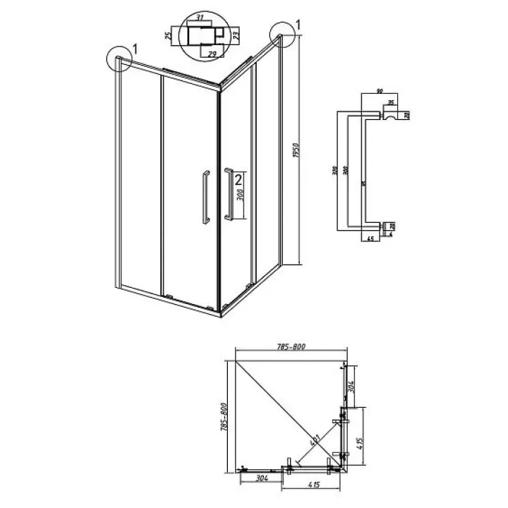 Душевое ограждение GROSSMAN 300.K33.02.8080.10.00 хром