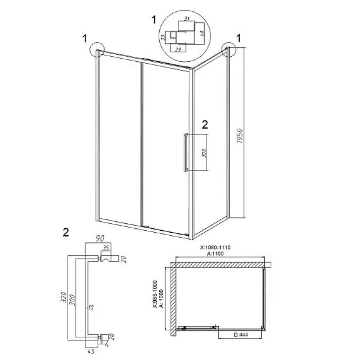 Душевое ограждение GROSSMAN 100.K33.02.110.21.10-200.K33.02.100.21.10 черный матовый