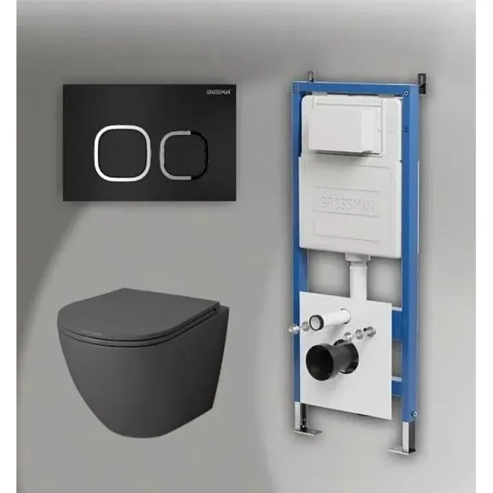 Комплект GROSSMAN инсталляция 900.K31.01.000 + клавиша смыва 700.K31.02.210.210 черный матовый + унитаз GR-4455GMS